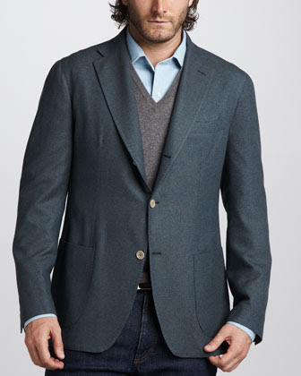 In April of 1982 Time magazine featured Giorgio Armani on its cover. Armani's first radically different blazer appeared in the fashion world under his own label between 1974 and 1975. His sartorial style exhibited a decidedly relaxed, even rumpled look. The designer softened these new jackets by pulling out the padding and lining and leaving out stiffeners of any kind. He combined thinner lapels with baggier pockets and longer jackets. "Armani's unstructured look makes even his English wool suits feel as comfortable as silk pajamas," observed a writer for People magazine. And in Esquire, Rita Hamilton credited Armani's suit jackets with "the kind of shape that defied the proper Italian establishmentarian look and mirrored the defiant, angry mood of political and social unrest." But, as American designer Donna Karan put it in the New York Times Magazine, "fashion evolves." And Armani's designs did change by the end of the 1970s. Casual Sport Coat